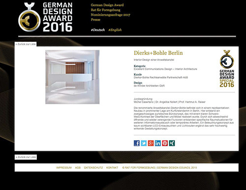 • German Design Award 2016 für Dierks + Bohle Berlin