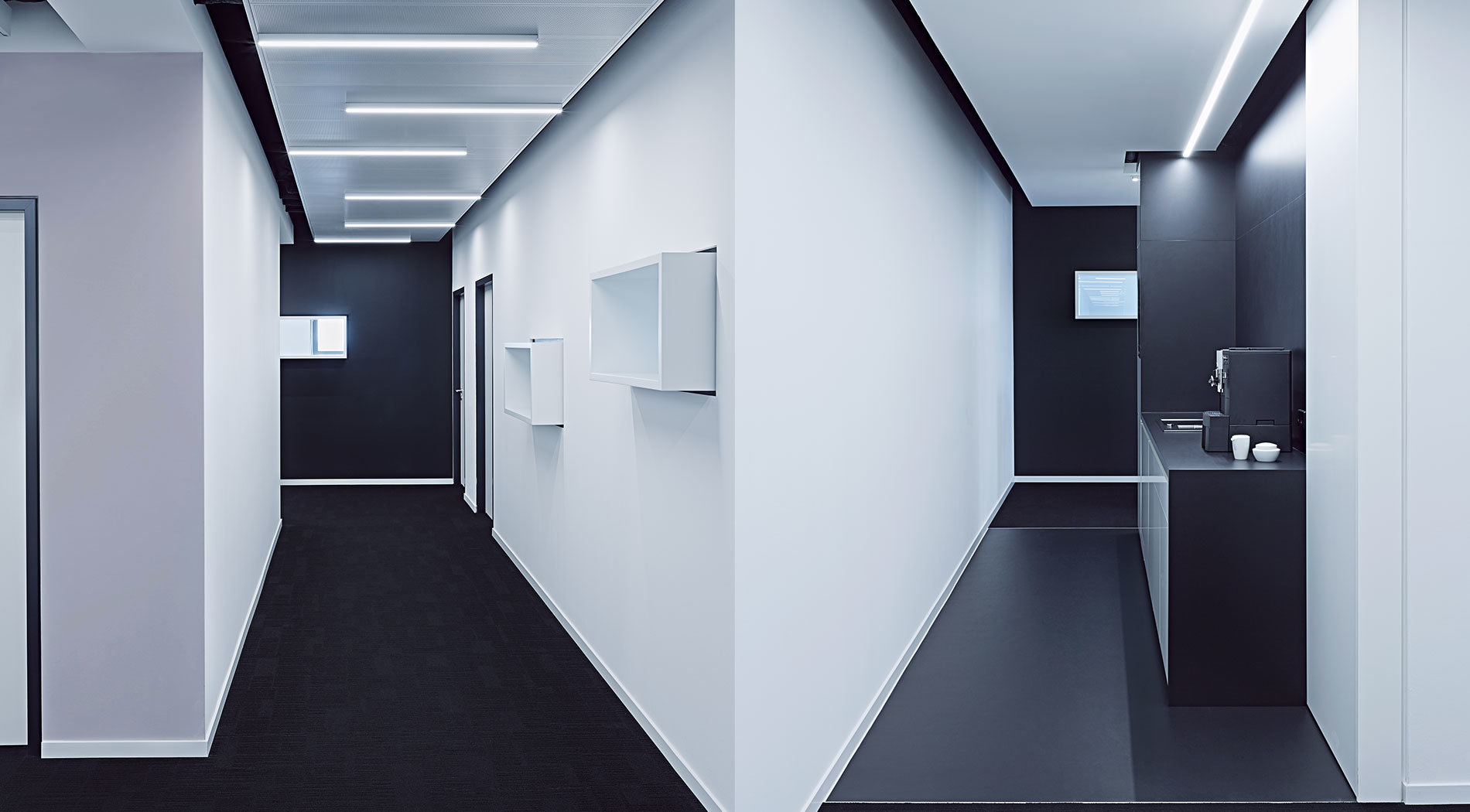 The offices, reception, waiting area and large conference room are arranged in the outer zone. The internal corridor with the surrounding white wall covering picks up the ancillary areas and forms the library, archive, kitchenette and break area. When the doors are open, the conference room becomes part of the corridor flow.
