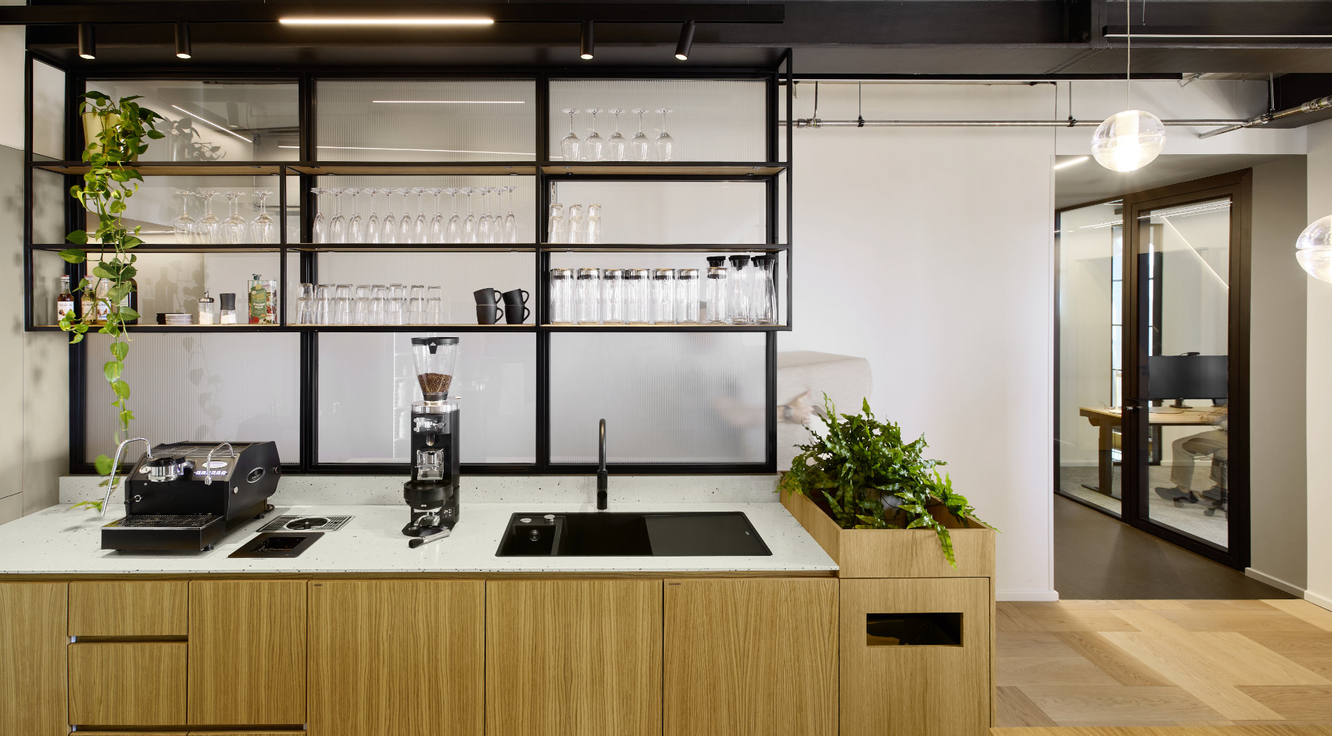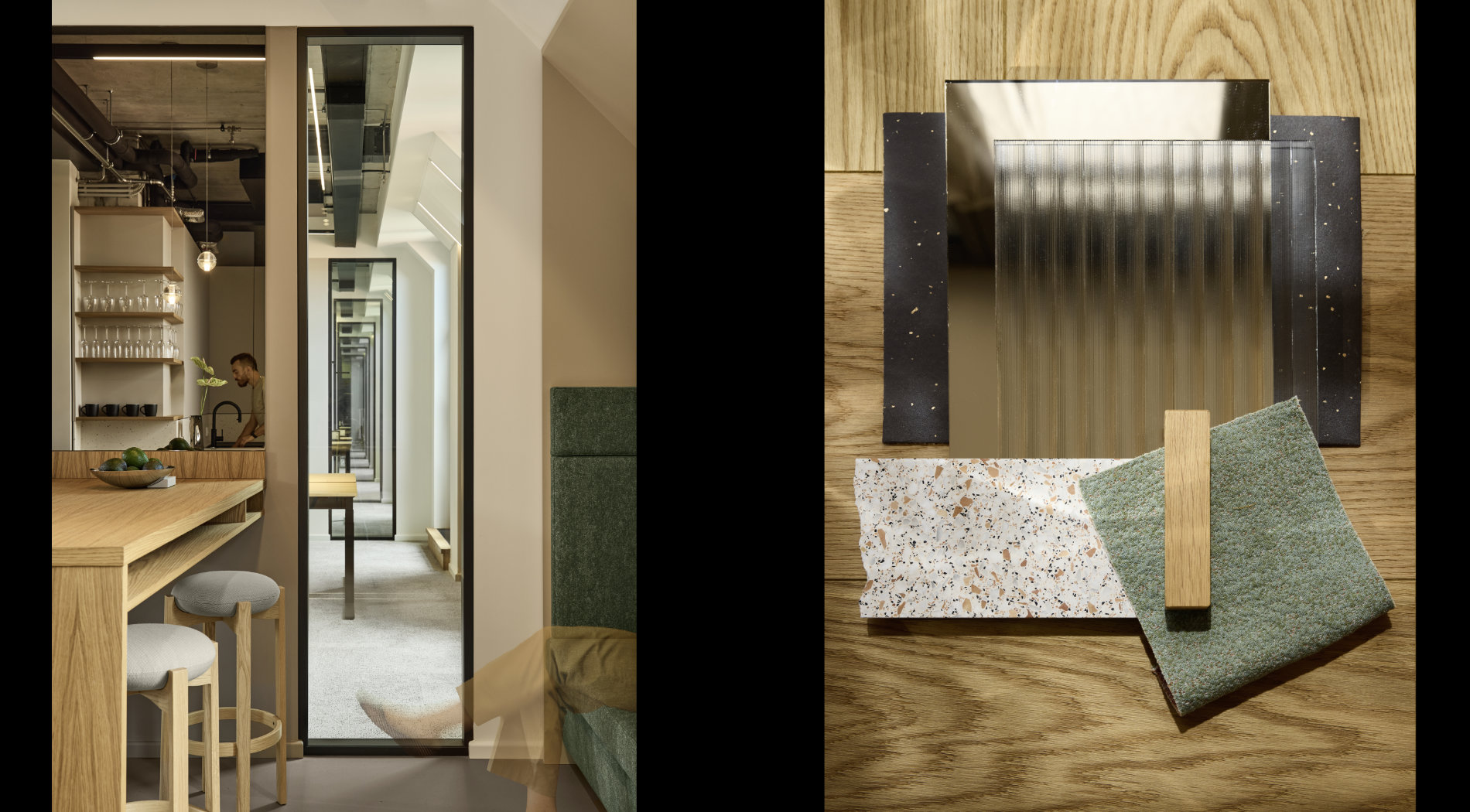 Im Sinne einer relationalen Architektur wird der Innenraum nicht isoliert gedacht, sondern in Beziehung gesetzt: zur Stadtlandschaft, zum natürlichen Licht, zu den Bewegungen und Bedürfnissen seiner Nutzenden. Gauben und Loggien als vermittelnde Schwellen zwischen Innen und Außen schaffen Rückzugsorte, die das Verhältnis von Arbeit, Wahrnehmung und Stadtlandschaft neu ordnen. Sie öffnen Sichtachsen zu ikonografischen Bezugspunkten der Stadt - zur Synagoge, dem Berliner Fernsehturm über die Dächer der Museumsinsel -, die einen visuellen Resonanzraum schaffen und die Bürofläche im städtischen Dialog verankern.