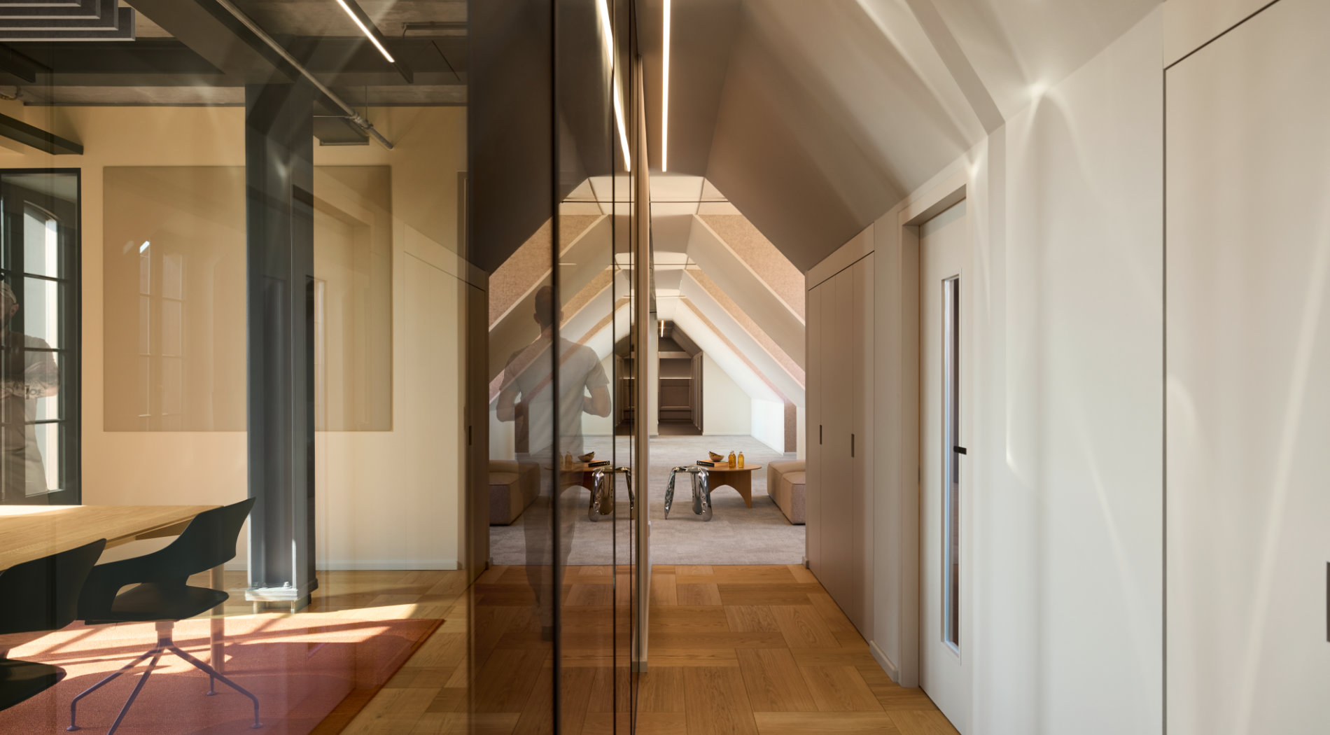 Dieser Ausbau ist ein Möglichkeitsraum für neue Formen der Zusammenarbeit. Der Ort erzählt davon, wie Räume Unternehmenskultur sichtbar werden lassen, wie Architektur Co-Kreation ermöglicht und Zugehörigkeit stärkt. Er öffnet den Blick für Verbindungen – zwischen Menschen, Vergangenheit und Zukunft. Dieser Dachgeschossausbau ist ein Plädoyer für Räume, die nicht nur gestaltet sind, sondern lebendig wirken, mit authentischen Räumen, die sich einmischen – nicht durch Lautstärke, sondern durch Bedeutung. Denn Architektur ist mehr als Raum. Sie ist Beziehung in gebauter Form.