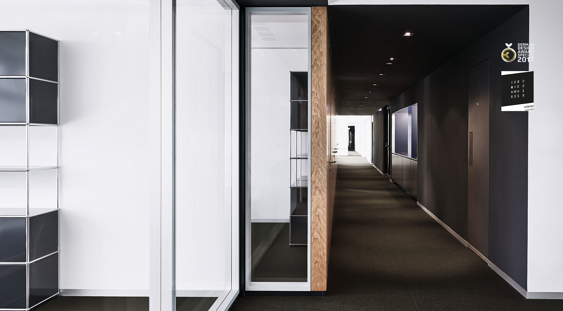 Ausgehend vom Unternehmensalltag mit vorwiegend flexiblen Office-Tagen entstanden neben festen Arbeitsplätzen vor allem offene Bereiche für temporäre Nutzungen. Im Gegensatz zu den klassisch funktionalen Einzelbüros und repräsentativen Doppel- und Partnerbüros wurden an den Flurenden beider Bürogeschosse großzügig gestaltete Open-space-Bereiche mit eingestellten gläsernen Teamräumen konzipiert. Farbig gepolsterte Telefon-Booths mit weiß glänzender Oberfläche sowie gläserne Workbooths mit Einzelarbeitsplätzen, abwechselnde 6-er oder 4-er Benches sowie lange, zum Zoo ausgerichtete Fassadentische ergänzen diese Flächen. In den Mittelzonen weitet sich der Korridor auf und bietet ebenso Raum für offene Arbeitsflächen oder Loungebereiche.
