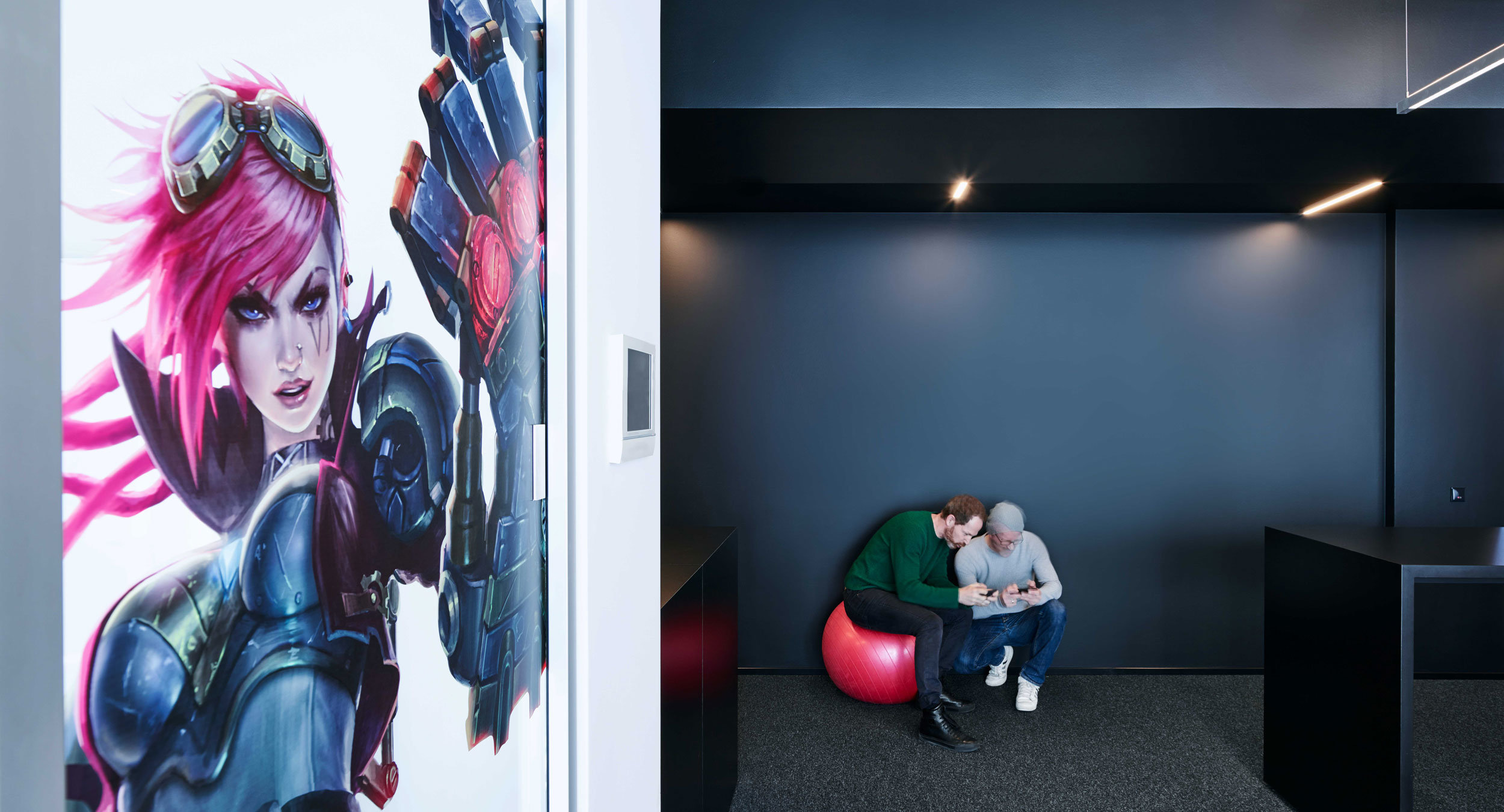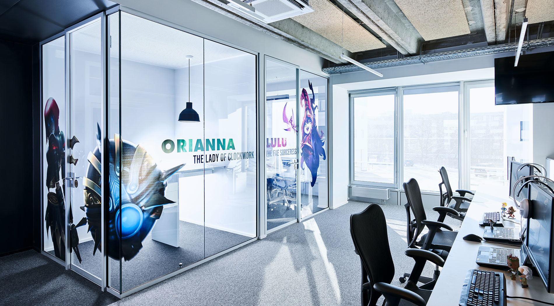 Für den neuen Deutschlandstandort eines amerikanischen Videospiel- und eSports-Unternehmens entstand 2015 eine repräsentative Bürofläche für 50 Mitarbeiter in einem Neubau in Berlin-Adlershof. Um eine offene und moderne Arbeitsumgebung zu realisieren, wurde die klassische Raumaufteilung aus Einzelbüros mit Fluren aufgelöst. Auf der rund 900 m² großen Fläche verteilen sich nun Open-Space-Bereiche mit kombinierten Meetingräumen, einer Players-Lounge sowie einem Auditorium.