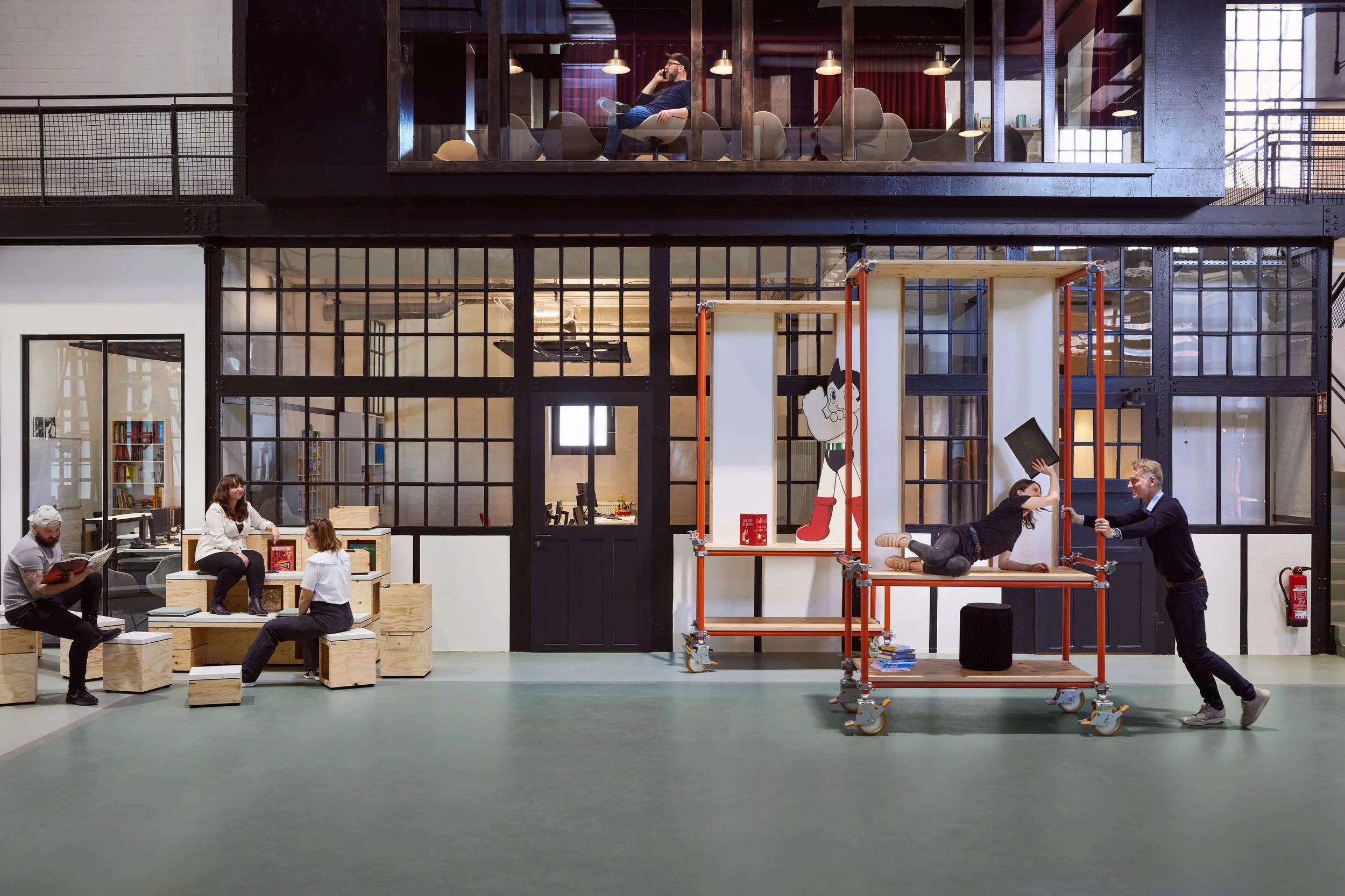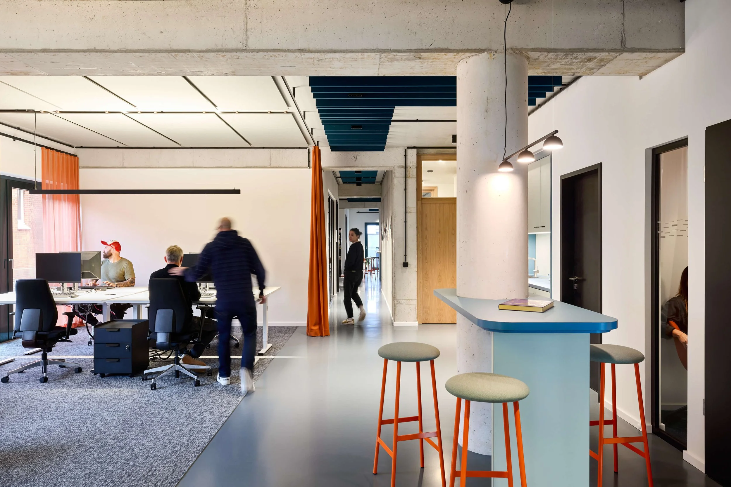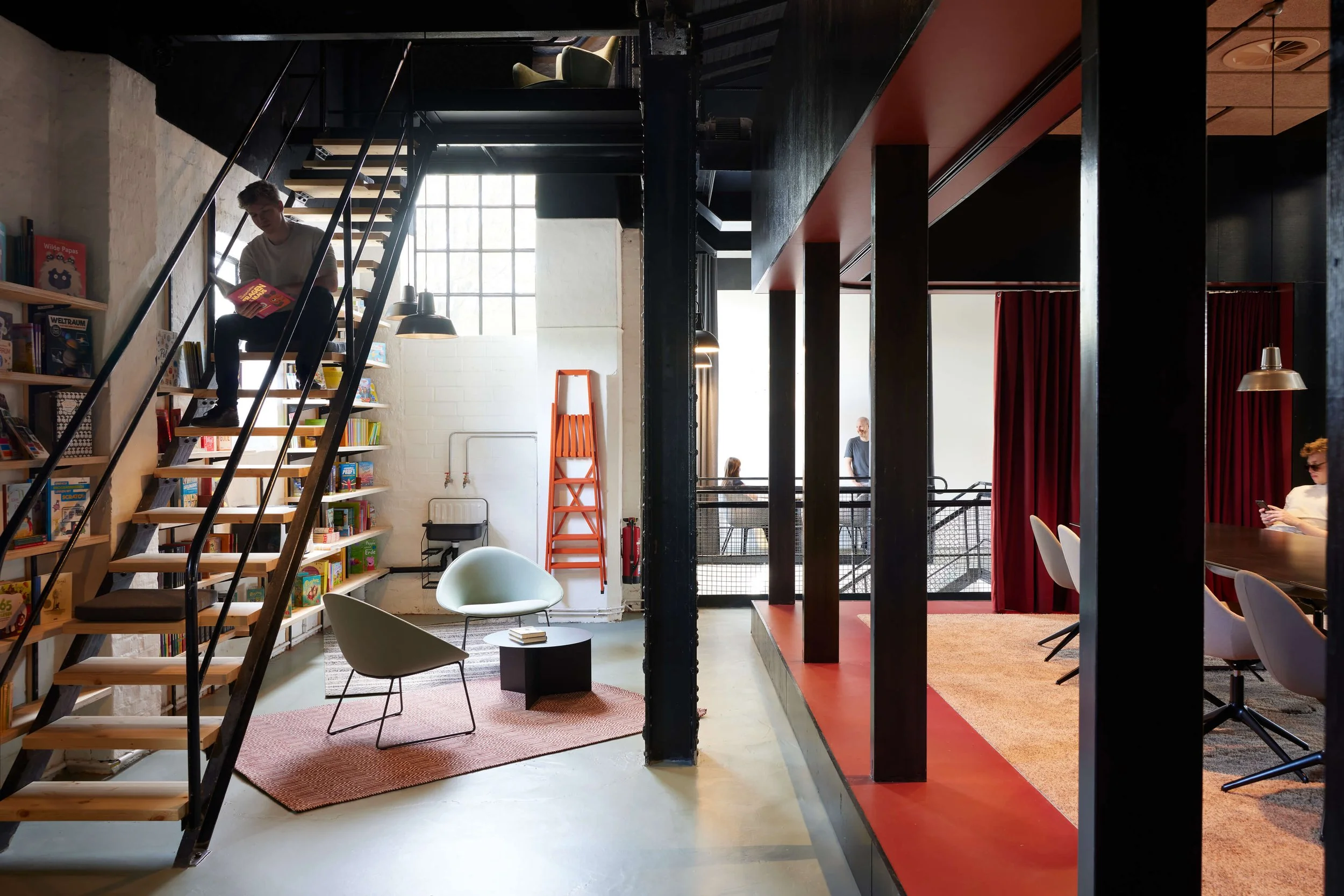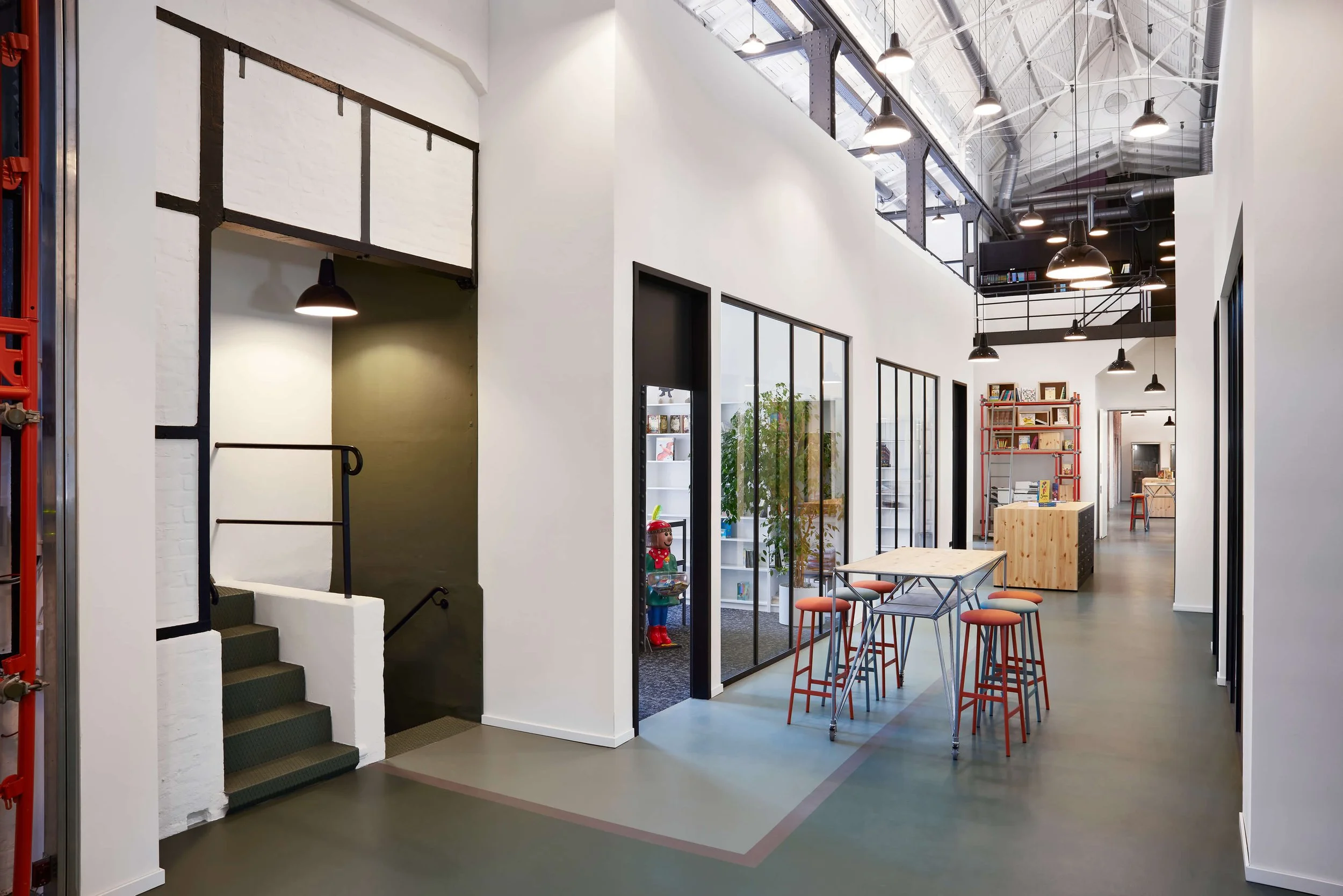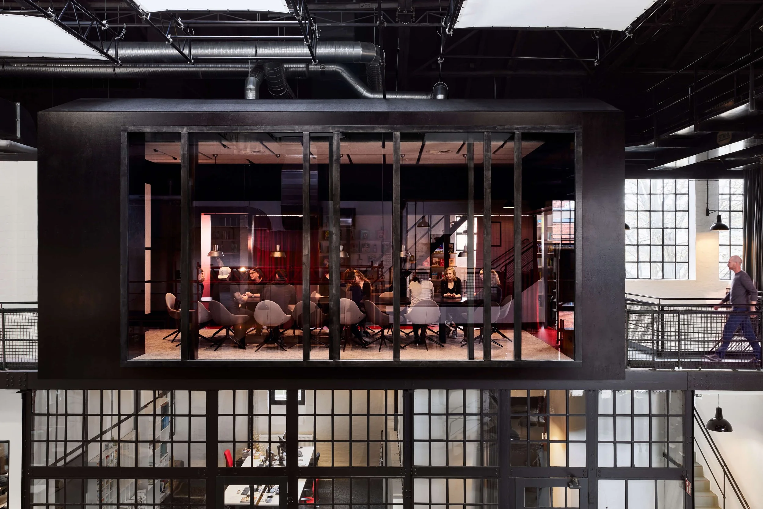 Bereits während des Lockdowns haben wir uns die Frage gestellt: Wie holt man Menschen zurück ins Büro? Zu dieser Zeit waren wir dabei für den Carlsen Verlag eine ehemalige Schiffswerft in einen Raum zu verwandeln, der auf Verbindung statt Verpflichtung setzt – auf Integration statt Isolation. Der Ausbau wahrt die industrielle Substanz, übersetzt sie atmosphärisch ins Jetzt und verknüpft Identität mit Alltag. Inspirierende Raum-in-Raum-Strukturen, Blickbeziehungen und zonierende Layouts schaffen einen Ort für Co-Kreation, Konzentration und Gemeinschaft. Ein Marktplatz. Ein Haus im Haus. Ein Home im Office. Und eine Einladung zur Rückkehr ins „being busy“.
